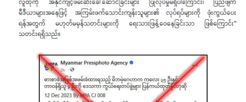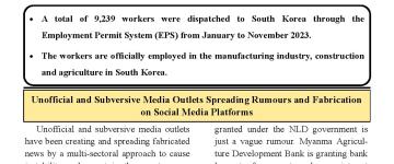 လူမှုကွန်ရက်စာမျက်နှာတွင် သတင်းတုသတင်းမှားများ ရေးသားဖြန့်ဝေ နေပြည်တော်၊ ၂၀၂၃ ဒီ