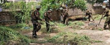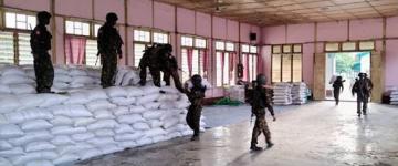 လုံခြုံရေးတပ်ဖွဲ့ဝင်များက ကျောက်မဲမြို့၊ အမှတ်(၁)အခြေခံပညာအထက်တန်း ကျောင်း၌ သန့်