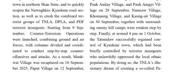 တပ်မတော်စစ်ကြောင်းများက အကြမ်းဖက်သောင်းကျန်းသူများ ယာယီစိုးမိုးထားသည့် ကျောက်မဲမ