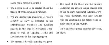 နိုင်ငံတော်ကာကွယ်ရေးနှင့် လုံခြုံရေးတာဝန် ထမ်းဆောင်နေကြသည့် တပ်မတော်သား များအား