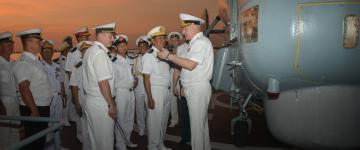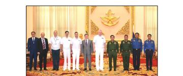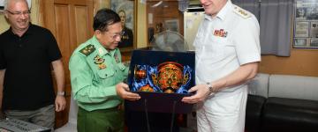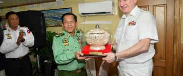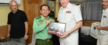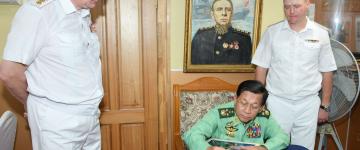 ကာကွယ်ရေးဦးစီးချုပ်(ရေ) ဗိုလ်ချုပ်ကြီးမိုးအောင် ရုရှားရေတပ်ဦးစီးချုပ်အား ဂုဏ်ပြု