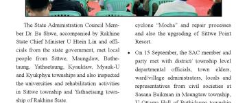 ရခိုင်ပြည်နယ်၊ စစ်တွေမြို့ရှိ မုန်တိုင်းဒဏ်သင့်ပြည်သူများအား စားသောက်ကုန်ပစ္စည်း
