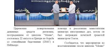 ရခိုင်ပြည်နယ်၊ စစ်တွေမြို့ရှိ မုန်တိုင်းဒဏ်သင့်ပြည်သူများအား ဆန်၊ ဆီ၊ ဆား၊ ကြက်ဥ