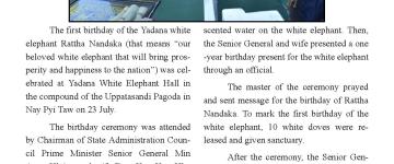 ရတနာဆင်ဖြူတော်လေး “ရဋ္ဌ နန္ဒက” (တိုင်းပြည်က ချစ်ခင်မြတ်နိုး၍ နိုင်ငံတော်၏ သာယာဝပ