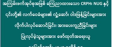 အကြမ်းဖက်အုပ်စုအဖြစ် ကြေညာထားသော CRPH၊ NUG နှင့် ၎င်းတို့၏ လက်ဝေခံများ၏ လှုံ့ဆော