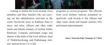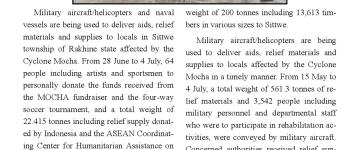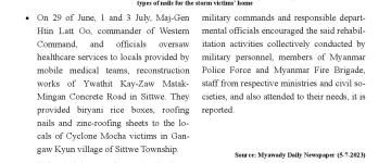 သဘာဝဘေးအန္တရာယ် ကျရောက်သောဒေသများတွင် တပ်မတော်မှ ကူညီကယ်ဆယ် ရေးအဖွဲ့များက ကူညီကယ