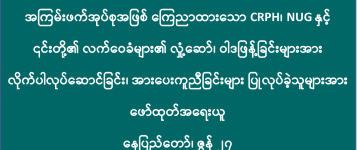 အကြမ်းဖက်အုပ်စုအဖြစ် ကြေညာထားသော CRPH၊ NUG နှင့် ၎င်းတို့၏ လက်ဝေခံများ၏ လှုံ့ဆော