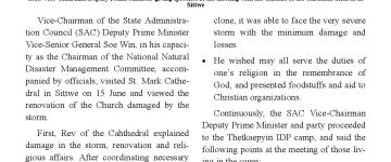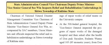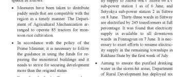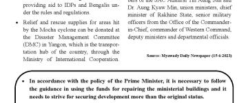 ရခိုင်ပြည်နယ်အတွင်း မိုခါမုန်တိုင်းသင့် ဒေသများတွင် ပြန်လည်ထူထောင်ရေး လုပ်ငန်းမျ