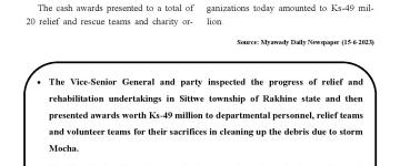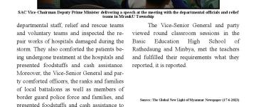 ဆိုင်ကလုန်းမုန်တိုင်း မိုခါ(MOCHA) ဖြတ်သန်းတိုက်ခတ်မှုကြောင့် ထိခိုက်ပျက်စီး ဆုံ