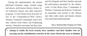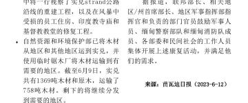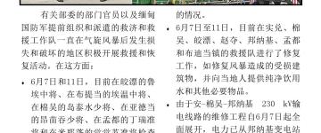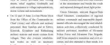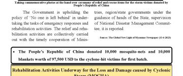 ရခိုင်ပြည်နယ်အတွင်း မိုခါမုန်တိုင်းသင့် ဒေသများတွင် ပြန်လည်ထူထောင်ရေး လုပ်ငန်းမျ