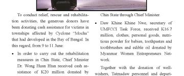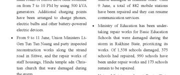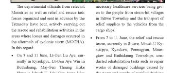 ရခိုင်ပြည်နယ်အတွင်း မိုခါမုန်တိုင်းသင့် ဒေသများတွင် ပြန်လည်ထူထောင်ရေး လုပ်ငန်းမျ