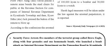 ကချင်ပြည်နယ်၊ တနိုင်းမြို့နယ်မှ ဥပဒေဘောင်အတွင်း လက်နက်/ခဲယမ်းများ နှင့်အတူ ပြန်လ