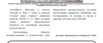 ဆိုင်ကလုန်းမုန်တိုင်း မိုခါ(MOCHA) ဝင်ရောက်တိုက်ခိုက်မှုကြောင့် ရခိုင်ပြည်နယ် အတ