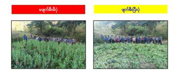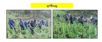 မူးယစ်ဆေးဝါးတိုက်ဖျက်ရေးလုပ်ငန်းစဉ်များတွင် တစ်ခုအပါအဝင်ဖြစ်သည့် ဘိန်းခင်းများအာ