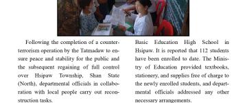 အရှေ့မြောက်တိုင်းစစ်ဌာနချုပ်ရှိ တပ်မတော်သားမိသားစုဝင် ကျောင်းသား၊ ကျောင်းသူများ