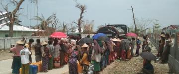 စစ်တွေမြို့ရှိ မုန်တိုင်းဒဏ်သင့်ပြည်သူများအား ဆန်၊ ဆီ၊ ဆား၊ ကြက်ဥ၊ ဟင်းသီးဟင်းရ