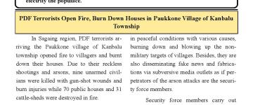 စစ်ကိုင်းတိုင်းဒေသကြီး၊ စစ်ကိုင်းမြို့နယ်အတွင်းရှိ ဒေသခံပြည်သူများအား တပ်မတော် န