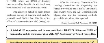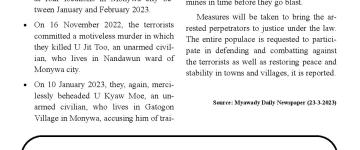 ကြေညာချက်အမှတ် ( ၅ / ၂၀၂၃ ) ၁၃၈၄ ခုနှစ်၊ တန်ခူးလဆန်း ၈ ရက် ( ၂၀၂၃ ခုနှစ်၊ မ