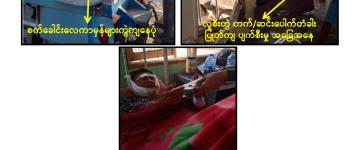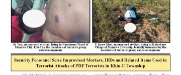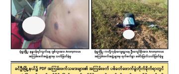 ရွှေဘိုမြို့ရှိ အဝေးပြေးကားကွင်းအနီး၌ PDF အမည်ခံအကြမ်းဖက်သမားများ ထောင်ထားသည့် ဒ