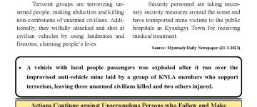 အကြမ်းဖက်သောင်းကျန်းသူများ၏ ရက်စက်ကြမ်းကြုတ်စွာ မိုင်းခွဲတိုက်ခိုက်မှုဒဏ်ကြောင့်