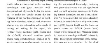 ၂၀၂၃ ခုနှစ်၊ ရေကြောင်းနှင့် လေကြောင်းလူငယ် အခြေခံသင်တန်းများနှင့် တန်းမြင့်သင်တန