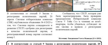 နိုင်ငံရေးပါတီ တည်ထောင်ခွင့်လျှောက်ထားခြင်းများကို စိစစ်ခွင့်ပြုပေးလျက်ရှိ နေပြ