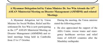 Information Sheet Volume VII, Issue 44 Myanmar (20-10-2025)