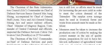 မကွေးတိုင်းဒေသကြီးအနေဖြင့် စားသုံးဆီနှင့် ချည်ထည်ပစ္စည်း အများဆုံး ထုတ်လုပ်သည့်