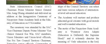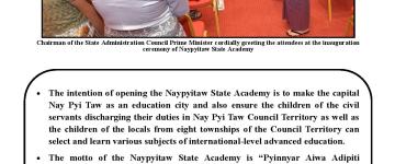 Naypyitaw State Academy ဖွင့်ပွဲ အခမ်းအနားကျင်းပ နိုင်ငံတော်စီမံအုပ်ချုပ်ရေးက