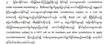 FATF ဥက္ကဋ္ဌ၏ မြန်မာနိုင်ငံနှင့်ပတ်သက်သော အချက်အလက်များ ထုတ်ပြန်မှုအပေါ် မြန်မာန