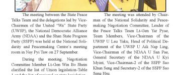 နိုင်ငံတော်၏ငြိမ်းချမ်းရေးဆွေးနွေးရေးအဖွဲ့နှင့် “ဝ” ပြည်သွေးစည်းညီညွတ်ရေးပါတီ (U