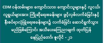CDM ဝန်ထမ်းများ၊ ကျောင်းသား၊ ကျောင်းသူများနှင့် လူငယ်၊ လူရွယ်များအား ကြိုဆိုရေးစ