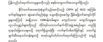 အကြမ်းဖက်အုပ်စုအဖြစ်ကြေညာထားသော CRPH၊ NUG နှင့် ယင်းတို့၏ လက်ဝေခံများ၏ လှုံ့ဆော်