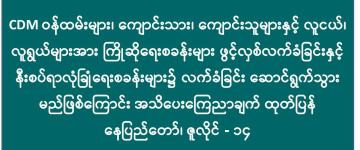 CDM ဝန်ထမ်းများ၊ ကျောင်းသား၊ ကျောင်းသူများနှင့် လူငယ်၊ လူရွယ်များအား ကြိုဆိုရေးစ