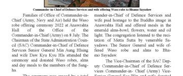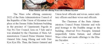 ဝါဆိုလပြည့်နေ့ (ဓမ္မစကြာအခါတော်နေ့)တွင် တိုင်းဒေသကြီးနှင့် ပြည်နယ် အသီးသီးရှိ ဘု