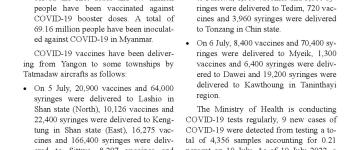 တိုင်းဒေသကြီးနှင့်ပြည်နယ်များ၌ ကိုဗစ်- ၁၉ ရောဂါ ကာကွယ်ဆေးများ ဆက်လက်ထိုးနှံ နေပ