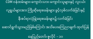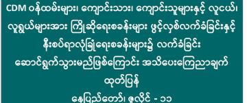 CDM ဝန်ထမ်းများ၊ ကျောင်းသား၊ ကျောင်းသူများနှင့် လူငယ်၊ လူရွယ်များအား ကြိုဆိုရေးစ