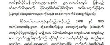 အကြမ်းဖက်အုပ်စုအဖြစ်ကြေညာထားသော CRPH၊ NUG နှင့် ယင်းတို့၏ လက်ဝေခံများ၏ လှုံ့ဆော်
