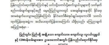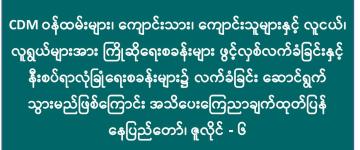 CDM ဝန်ထမ်းများ၊ ကျောင်းသား၊ ကျောင်းသူများနှင့် လူငယ်၊ လူရွယ်များအား ကြိုဆိုရေးစ