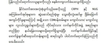 အကြမ်းဖက်အုပ်စုအဖြစ်ကြေညာထားသော CRPH၊ NUG နှင့် ယင်းတို့၏ လက်ဝေခံများ၏ လှုံ့ဆော်