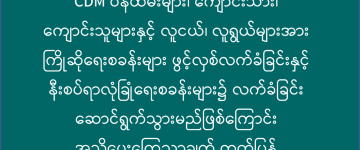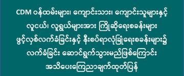 CDM ဝန်ထမ်းများ၊ ကျောင်းသား၊ ကျောင်းသူများနှင့် လူငယ်၊ လူရွယ်များအား ကြိုဆိုရေးစ