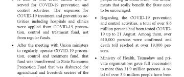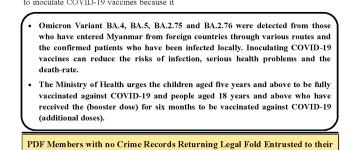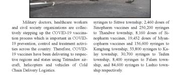 တိုင်းဒေသကြီးနှင့်ပြည်နယ်များ၌ ကိုဗစ်- ၁၉ ရောဂါ ကာကွယ်ဆေးများ ဆက်လက်ထိုးနှံ နေပ