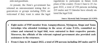 ဥပဒေဘောင်အတွင်း ဝင်ရောက်လာသည့် ပြစ်မှုကျူးလွန်ခြင်းမရှိခဲ့သော PDF အဖွဲ့ဝင် ၁ ဦ