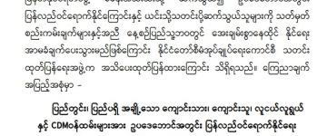 CDM ဝန်ထမ်းများ၊ ကျောင်းသား၊ ကျောင်းသူများနှင့် လူငယ်၊ လူရွယ်များအား ကြိုဆိုရေးစ