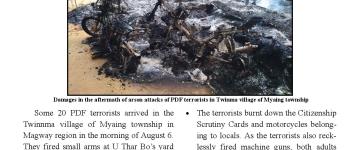 စစ်ကိုင်းတိုင်းဒေသကြီးအတွင်း PDF အမည်ခံအကြမ်းဖက်သများက ကျေးရွာများအား မီးရှို့ဖျ