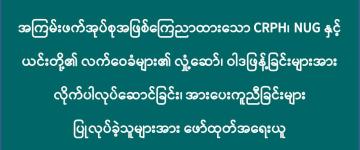 အကြမ်းဖက်အုပ်စုအဖြစ်ကြေညာထားသော CRPH၊ NUG နှင့် ယင်းတို့၏ လက်ဝေခံများ၏ လှုံ့ဆော်