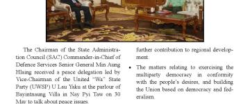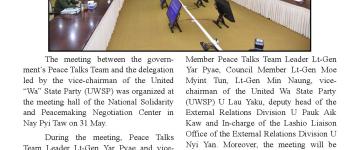“ဝ” ပြည် သွေးစည်းညီညွတ်ရေးပါတီ (UWSP) ဒုတိယဥက္ကဋ္ဌ ဦးလော့ယာကု ဦးဆောင်သော ငြိမ်းခ