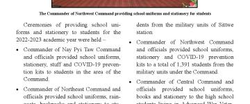 ၂၀၂၂-၂၀၂၃ ပညာသင်နှစ် ကျောင်းအပ်နှံရေးသီတင်းပတ်အတွင်း ကျောင်းသား၊ ကျောင်းသူ ၅၆ သိ