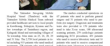 ပြင်ဦးလွင်မြို့ရှိ တပ်မတော်ဆေးရုံတွင် တက်ရောက်ဆေးကုသမှုခံယူလျက်ရှိသည့် ပညာရေးဝန်