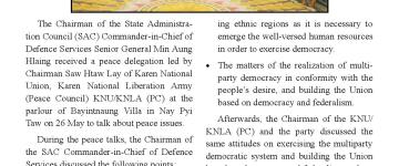နိုင်ငံတော်၏ငြိမ်းချမ်းရေးဆွေးနွေးရေးအဖွဲ့နှင့် “ဝ” ပြည်သွေးစည်းညီညွတ်ရေးပါတီ (U